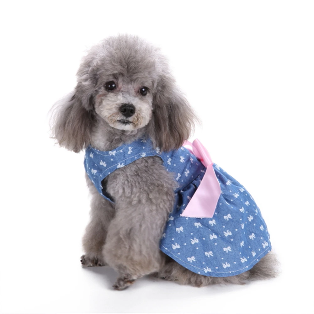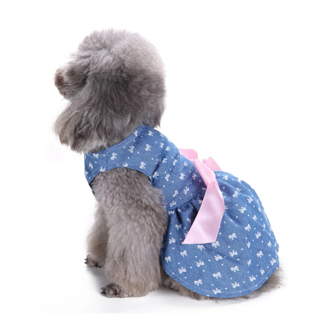 Comfortable Polyester Jeans Pet Princess Dress for Summer and Spring Cute Pet Dog Clothes with Fashionable Bowknot 1 PCS