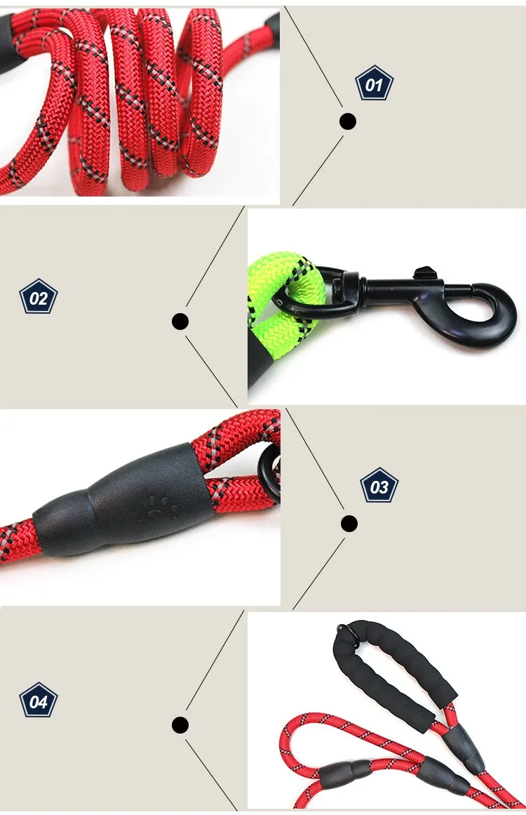Dog Leash Double Handle Leashes for Dog Walking Pull-resistant Dogs Leash Strong Ropes Reflective Dogs Leashes Pet Accessoires