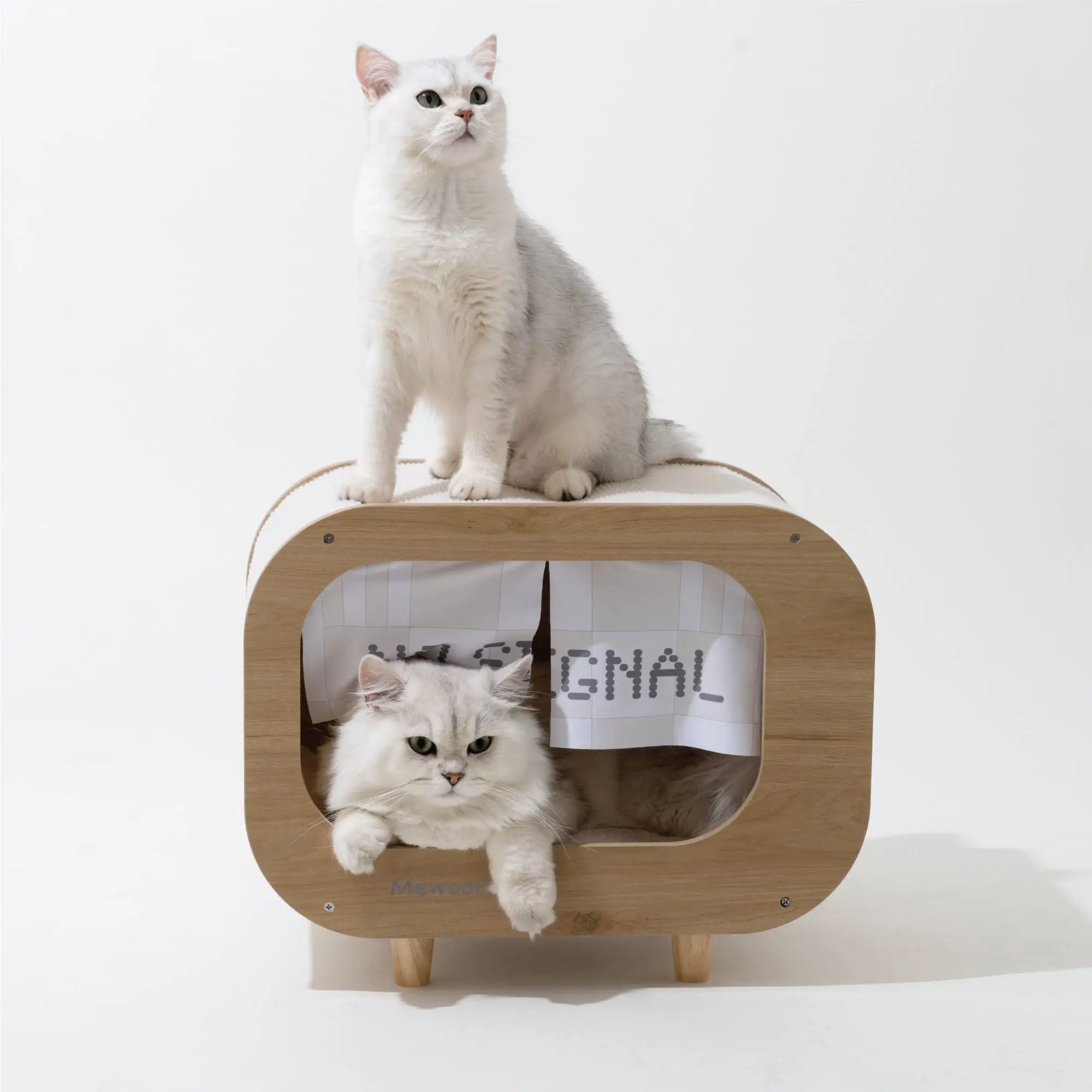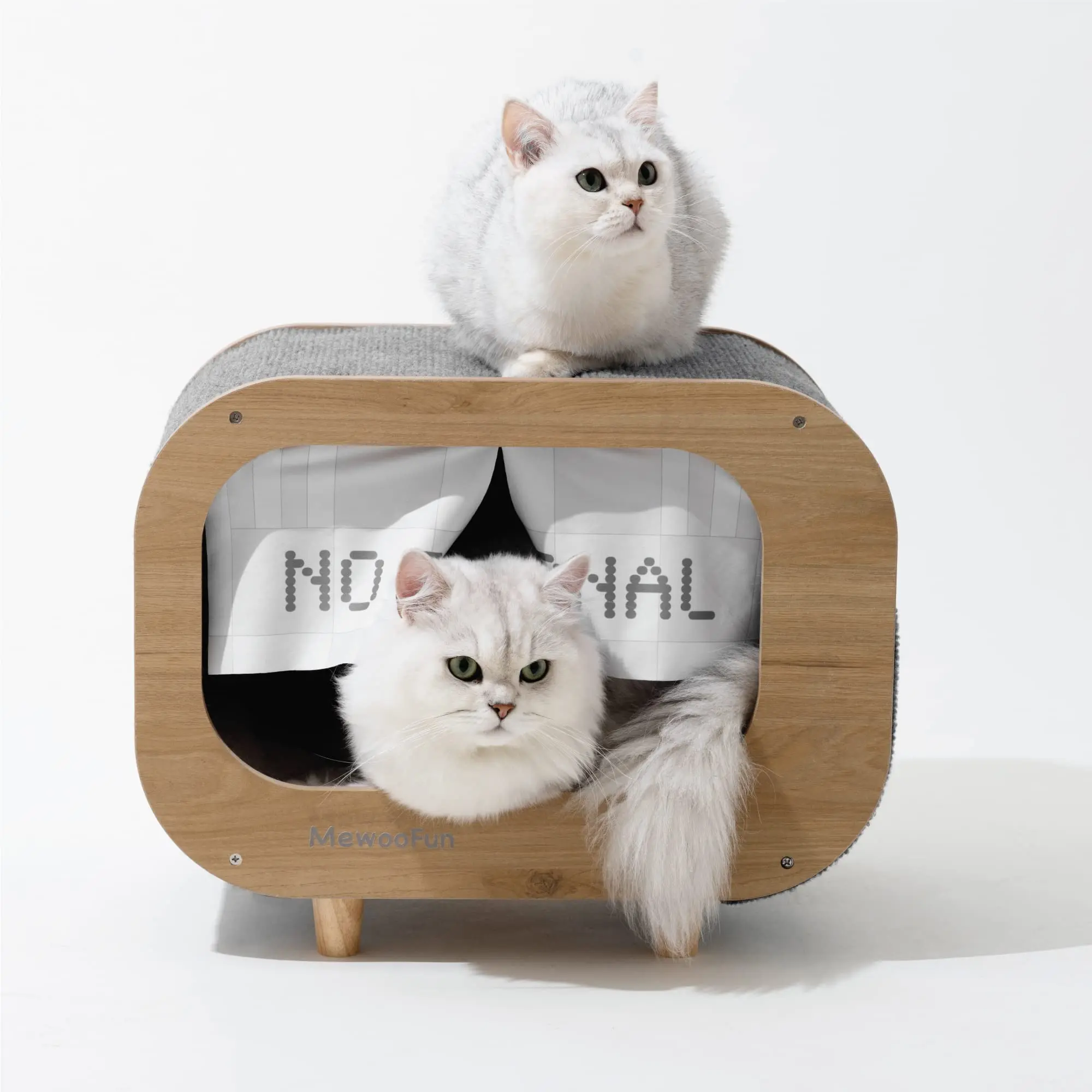 MewooFun Cat House Bed Cat Condo TV for Indoor Sturdy Luxury Large Wooden Fashion Cat Shelter Furniture with Scratching Pad