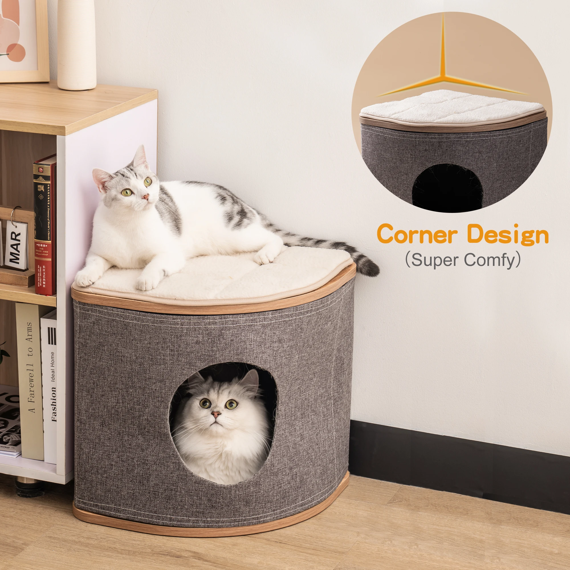 【Also a Great Decorative Furniture】Our designs are also inspired by furniture, so you can also use this cat house as furniture to complement your home decor style, with a fan-shaped design that fits the corners.