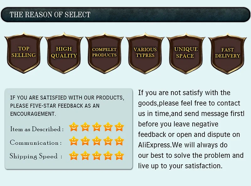 If you are satisfied with our products,please five-star feedback as an encouragment.