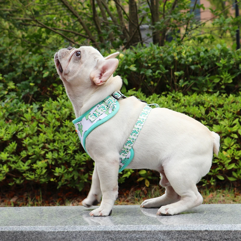 Fashion Printed Nylon Dog Harness Reflective French Bulldog Pug Harness Dog Vest For Small Medium Dogs Cats Walking Training