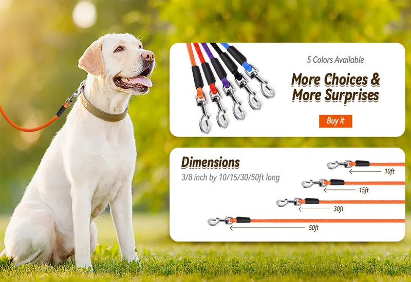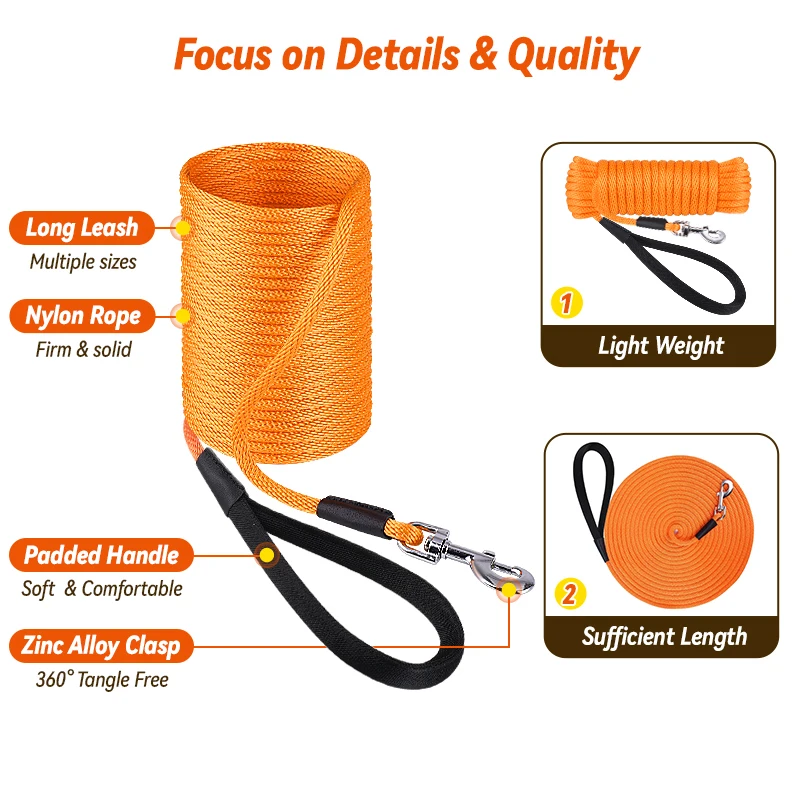 L: Length: 50Feet/1500cm , Rope width:9.5mm/3/8″ inch (Suitable for medium and large dogs)