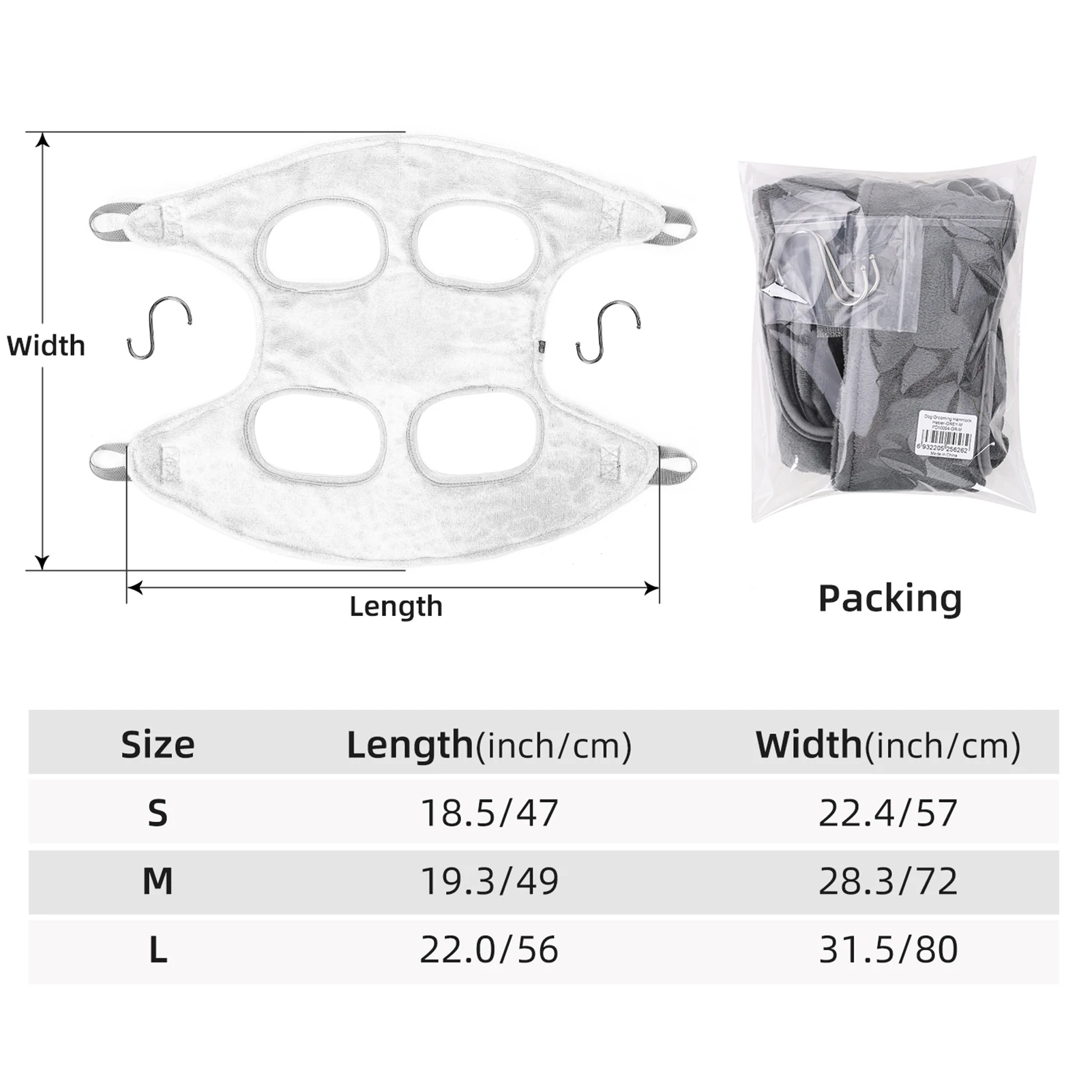 Description: The dog grooming tool is designed with high-quality double-layer fabrics, thick polyester high-density weaving, sturdy and durable. The pet hammock assistant can bathe, groom, apply medicine, trim nails and dig ears without worrying about accidental injury.