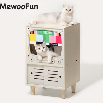 MEWOOFUN Cat Wooden House TV Appearance Design Cat Bed Sturdy Structure Furniture Decoration Easy to Clean Assembly US Stock