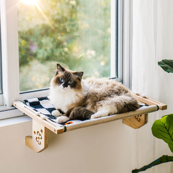 Mewoofun Sturdy Cat Window Perch Wooden Assembly Hanging Bed Cotton Canvas Easy Washable Multi-Ply Plywood Hot Selling Hammock