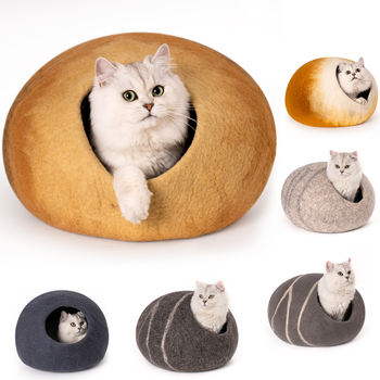 Mewoofun Premium Felt Cat Bed Cave Handmade 100% Merino Super Soft Wool Bed for Cats and Kittens Multi-Color In USA Warehouse