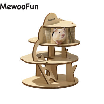 Mewoofun Hamster Wooden House Two and Three Layer Easy to Assembly DIY House Small Pet Bed Fun Decor Part Multi-Functions