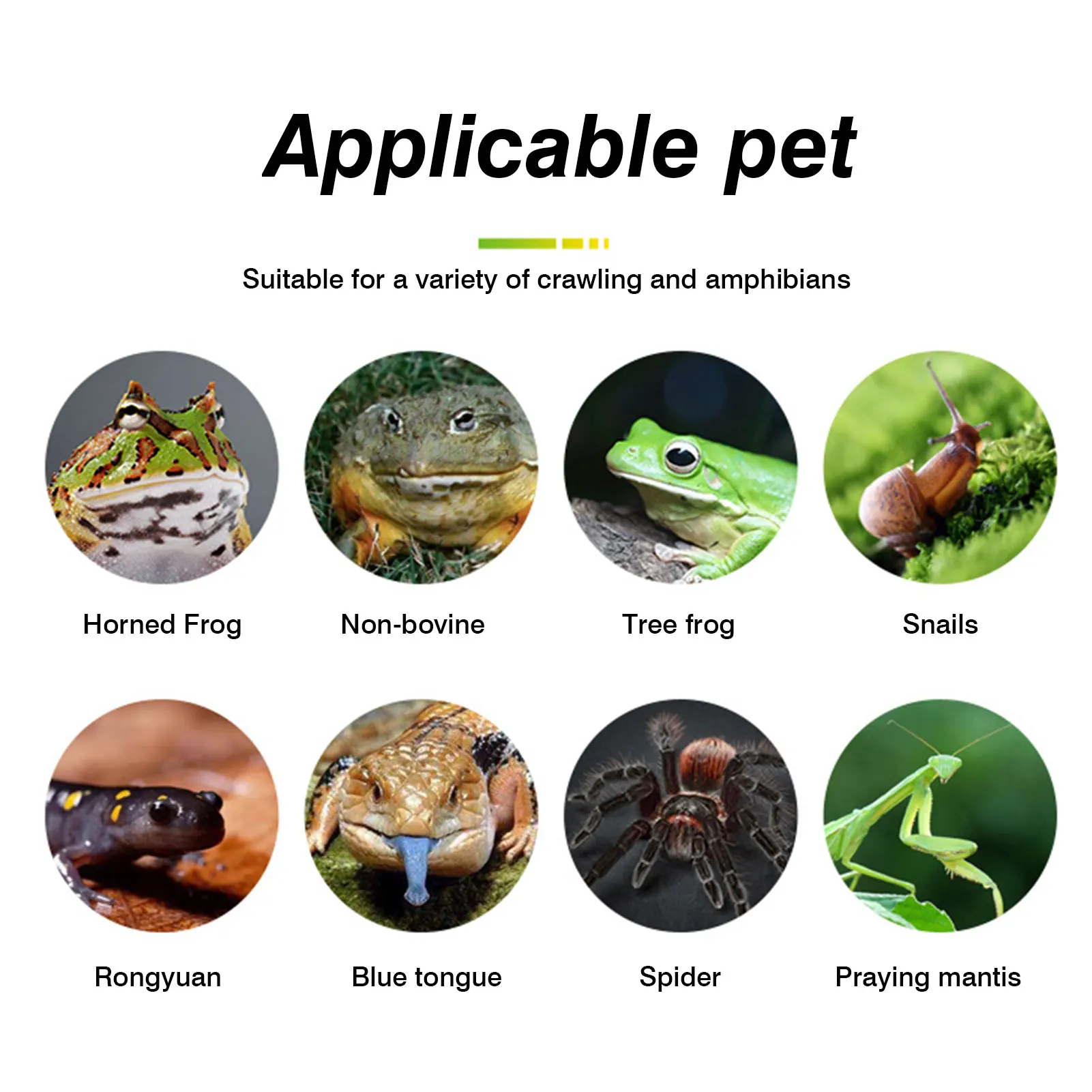 3、Used for: It can be used for a variety of crawling and amphibians, such as tortoises, bearded dragons, snakes, lizards, geckos, chameleons, praying mantises, spiders, snails, horned frogs, salamanders, etc.
