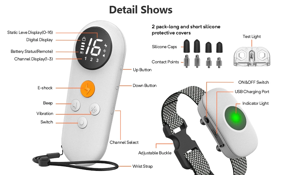 Long-Lasting Battery Life: The standby time of the collar is 15 days, and that of the remote is 20 days