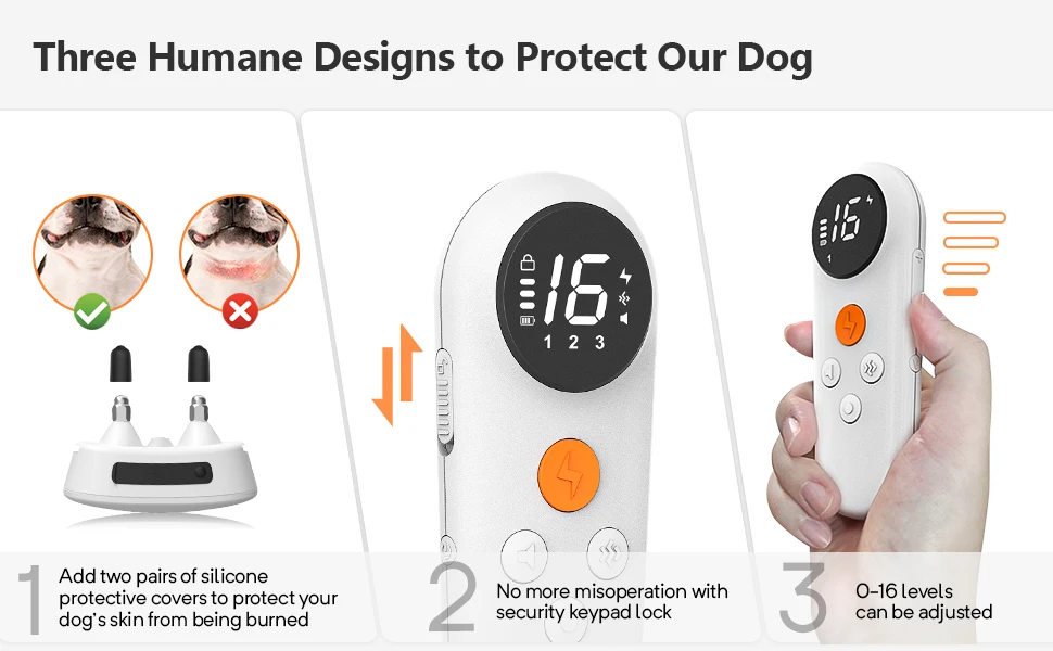 Smart Shock Collar: With electronic high-tech design, the extensive control range of pet training collar is up to 1640 ft, freeing yourself from a leash