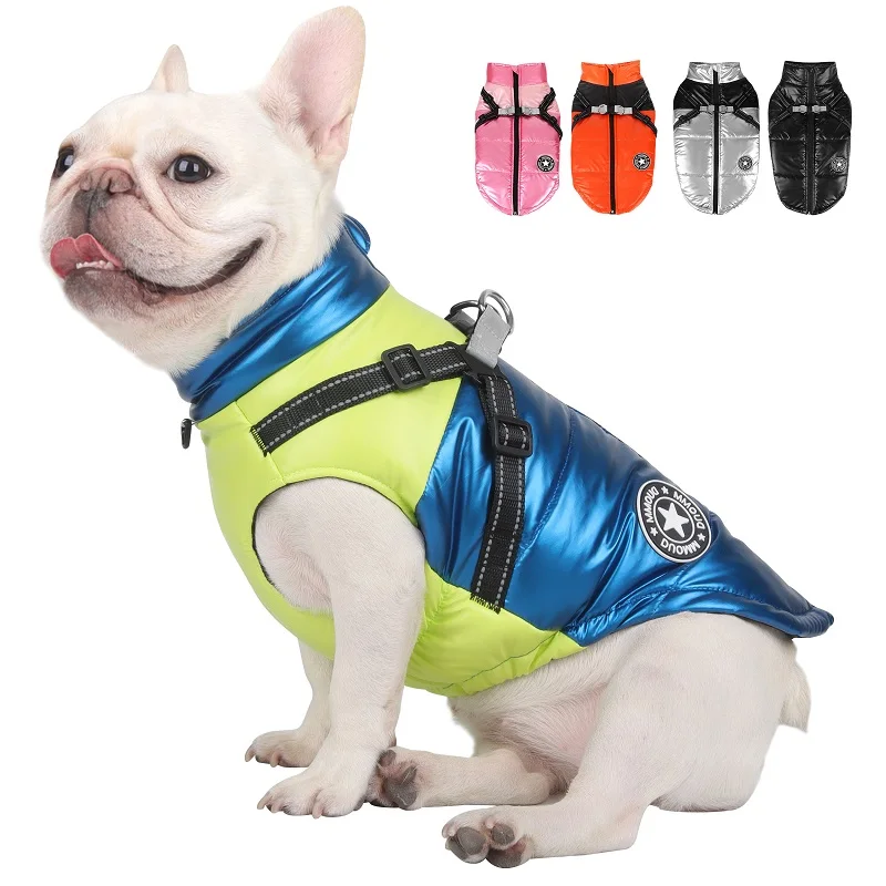 Warm Winter Dog Clothes Waterproof Dogs Vest French Bulldog Jacket Reflective Pet Clothing With Harness For Small Medium Dogs